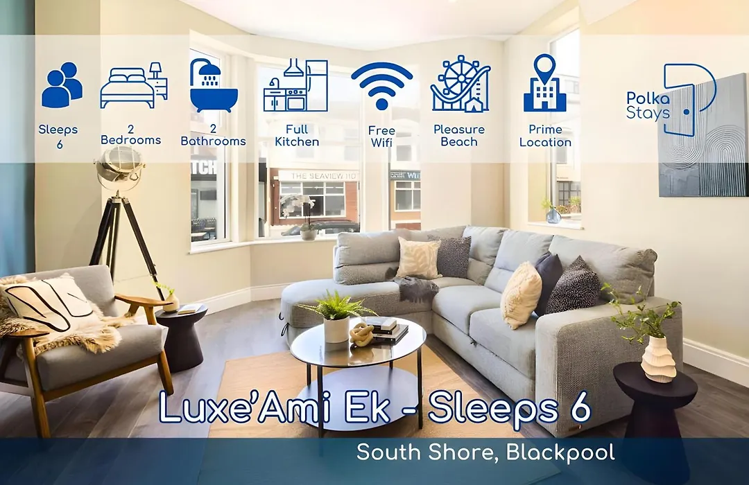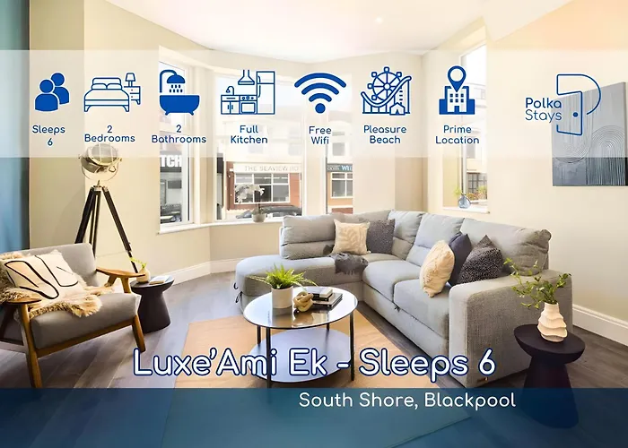 Das 70 m² große Luxe Ami Ek South Shore Gf Apartment By Polkastays Blackpool liegt in unmittelbarer Nähe von verschiedenen Sehenswürdigkeiten der Gegend: der South Pier befindet sich unter anderem 6 Minuten Fußweg von hier entfernt. Die Gäste können den WLAN sowohl für geschäftliche als auch für private Zwecke nutzen.